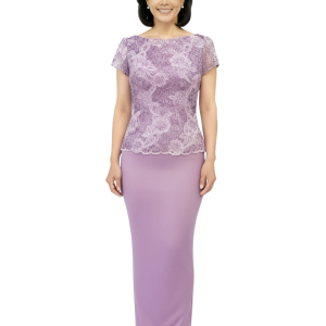 Orchid Embroidery Sequin Tulle Boatneck SS bodice on Shantung Silk